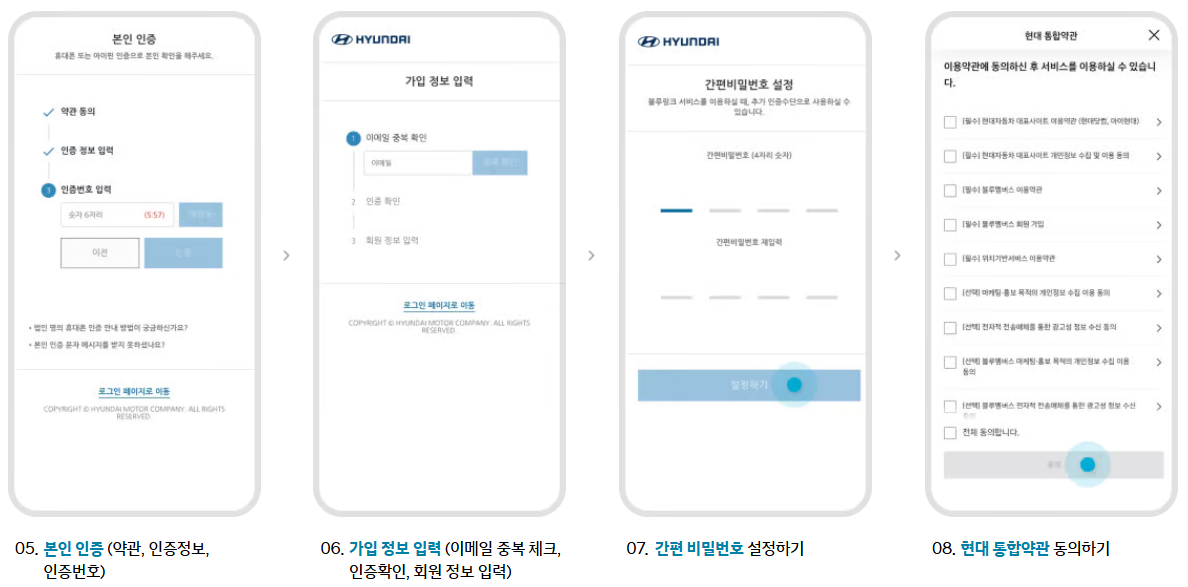 가입 - 마이현대 앱: 앱 내에서 직접 차량 등록 및 서비스 가입 진행