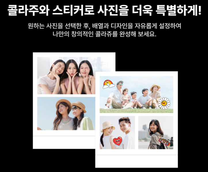 코닥 미니샷으로 인화한 사진은 다이어리나 앨범을 꾸미는 데 최적화된 크기입니다. 콜라주 기능, 다양한 필터, 테두리 옵션 등을 활용하면 더욱 감성적인 사진 연출이 가능합니다.